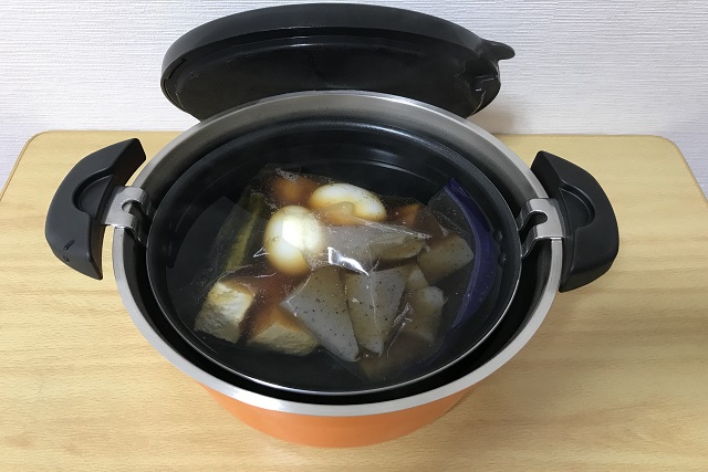 味が染みた美味しいおでんを、長時間火の加減を見ずに作れる調理器。